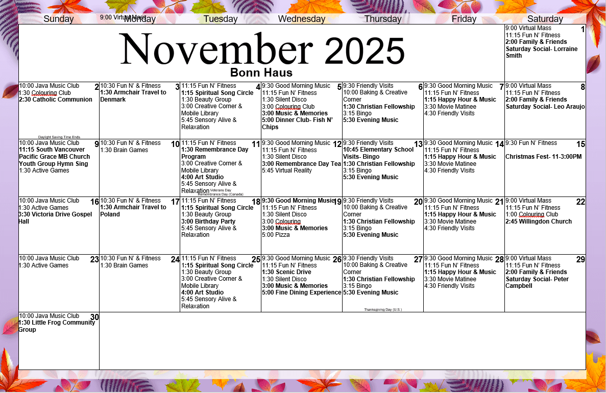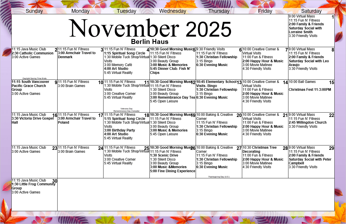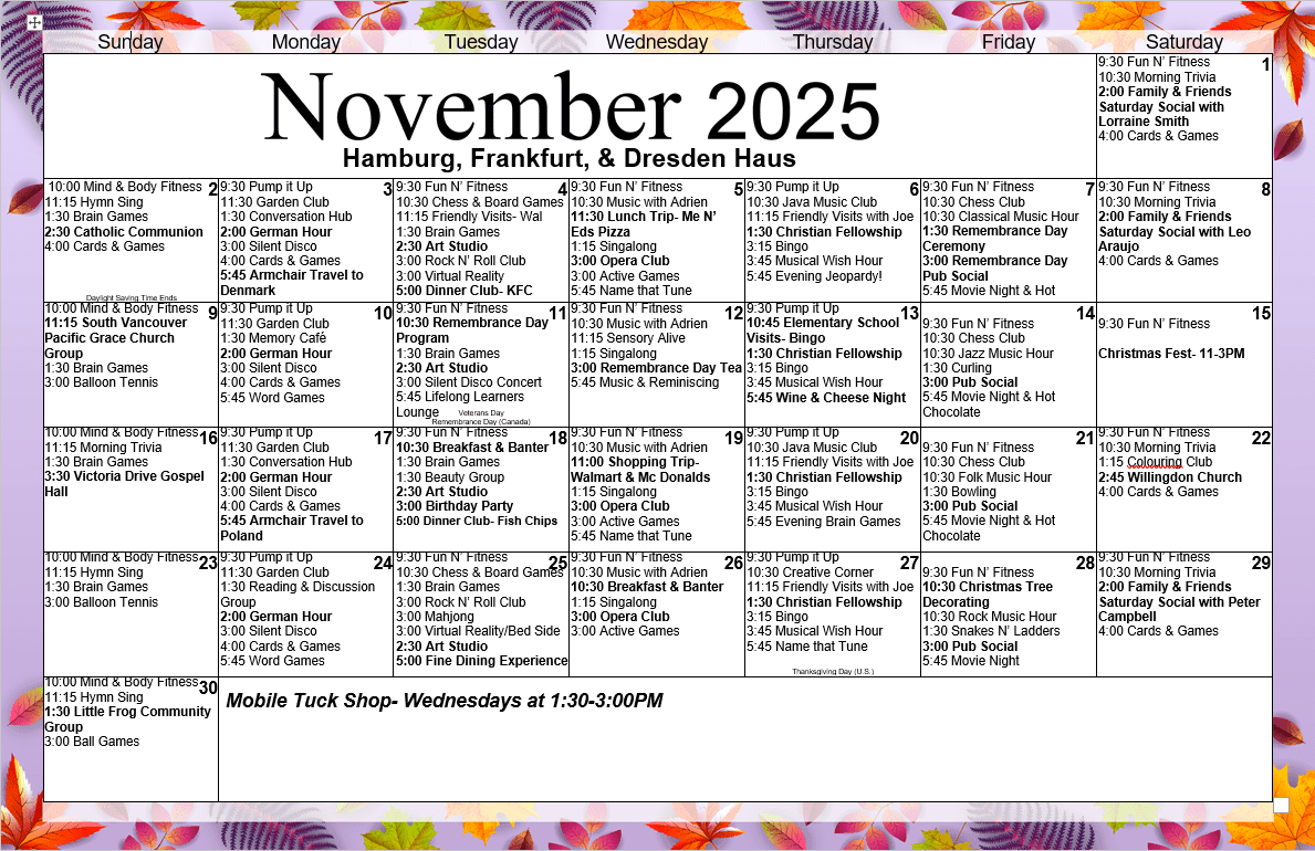 Monthly Recreation Calendar November 2025: Frankfurt, Hamburg, Dresden November 2025: Bonn Haus November 2025: Berlin Haus