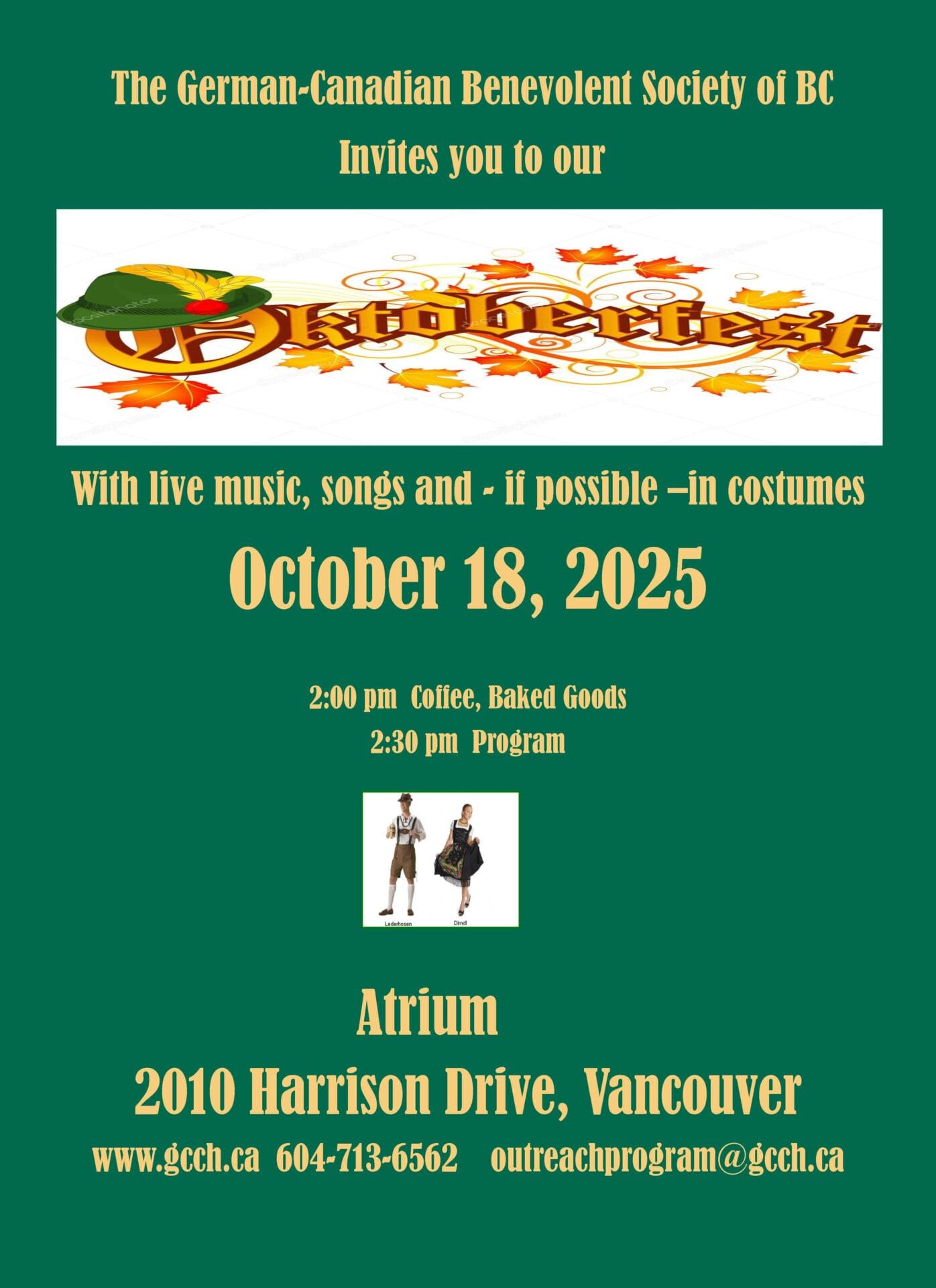 The German-Canadian Benevolent Society of British Columbia is registered as a charitable Organization within the meaning of the Income tax Act under Number 10742.8492.RR0001.
