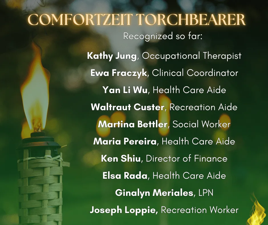 Comfortzeit Torchbearers are employees who are recognized for going above and beyond their job responsibilities to help a resident.